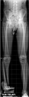 Tip 2 tibial hemimeli nedeni ile 13 yaşına kadar tedavi almamış hastaya uzaysal fiksatörle deformite düzeltme ve sonrasında da ayak bileği artrodezi uygulandı. Hasta plantigrade (düz ) basar hale getirildi.